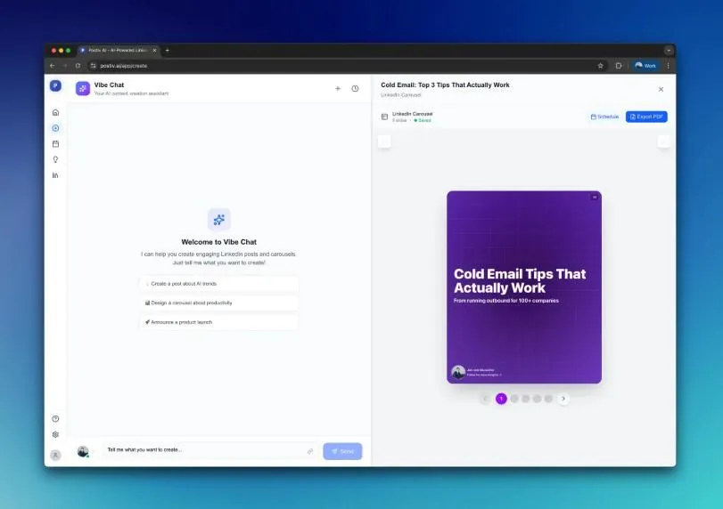 Create stunning carousels with AI-powered design suggestions that match your brand voice