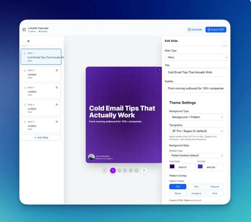 Fine-tune every detail with professional editing tools built for LinkedIn carousels