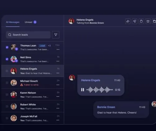 Handle all LinkedIn messages in one centralized inbox, without logging in and out of accounts all the time. Send voice notes from your desktop and reply on behalf of your colleagues.