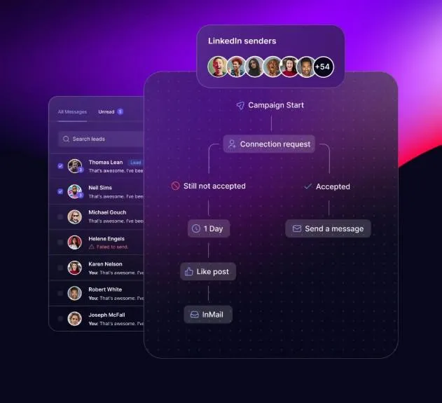Run outbound and inbound-led campaigns. Import relevant LinkedIn contacts from Sales Navigator or CSV